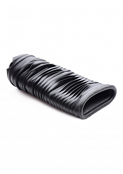Make masturbation even better with a stroker sleeve that treats you to both pleasure textures and intense vibration! This silicone male sex toy features a premium quality sleeve that is textured on the outside for a secure grip and contains dozens of soft, squishy ribs that will massage your penis. Engulf your sensitive head and shaft in 3 speeds and 7 patterns of buzzing bliss. The wired bullet and controller can even be removed for use on other parts of your body or your partner! Use with only water-based lubricants to preserve this high-quality material. Wash after use with toy cleaner or mild soap.