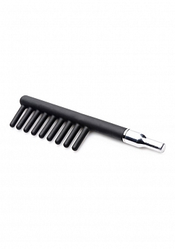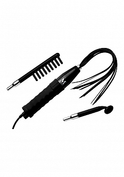 Sizzle the senses with electrosex! This Violet Wand set provides unique and intense sensations with silicone attachments that will not shatter like delicate glass. The mushroom-shaped accessory is ideal for sending pinpoint zaps of electricity into your slave or subs supple flesh. The comb features 9 teeth to transmit the current along a long strip of skin. Finally, the flogger will send a shock into them with every sensual stroke or swinging slap! The actual wand allows you to play with a wide range of power, from tingles to jolts. It features a silicone handle that enables a sturdy grip and a long cord that allows you to move freely around your playspace. Compatible with most violet wand attachments.