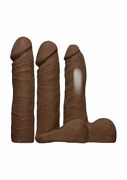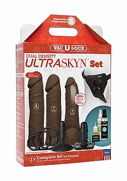 Your perfect strap-on experience is on lock with Doc Johnson's deluxe line of full-service Vac-U-Lock™ Harness Sets. The Vac-U-Lock Dual Density ULTRASKYN™ Set is a solid investment for upgrading or beginning your strap-on accessories collection, offering multiple options in one box via a complete harness with removable o-rings and plug, three ULTRASKYN™ attachments, and a bottle of Mood water-based lube. These lifelike dual density attachments—an 8" Realistic Dong, a 7" Cock, and the bestselling 7" Slim Cock-- warm to body temperature with use and feature a soft, pliable exterior that gives way to a firm inner core, recreating the feel of a real erect penis. Attachments can be used with the harness, the included Vac-U-Lock™ suction cup, and any other accessory or harness in the line. The Vac-U-Lock™ Dual Density Starter Set also includes Doc Johnson® Natural Toy Cleaner and ULTRASKYN™ Refresh Powder to properly and hygienically maintain your dual density ULTRASKYN™ attachments. Every product in the patented Vac-U-Lock™ system is designed to help you create any strap-on or toy you're in the mood for, and it's as simple as popping on the attachment of your choice.