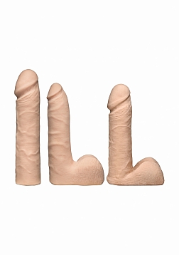 These lifelike dual density attachments — an 8" Realistic Dong, a 7" Cock, and the bestselling 7" Slim Cock — warm to body temperature with use and feature a soft exterior that gives way to a firm inner core, recreating the feel of a real erect penis. Attachments can be used with the harness, the included 360° Swivel Suction Cup, or any other accessory or harness in the line. The Vac-U-Lock Dual Density Starter Set also includes Doc Johnson Natural Toy Cleaner and ULTRASKYN Refresh Powder to properly and hygienically maintain your dual density ULTRASKYN attachments. Every product in the patented Vac-U-Lock system is designed to help you create any strap-on or toy you're in the mood for, and it's as simple as popping on the attachment of your choice.