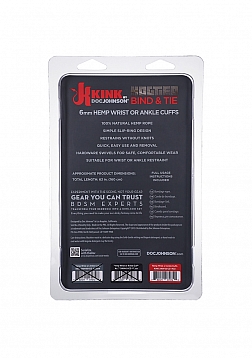 Rope is the original bondage and restraint tool, and finding the right rope for the job is essential for safe, pleasurable play. Crafted from our Bind & Tie 6mm width hemp bondage ropes, these soft cuffs are a perfect introduction to rope play for beginners and a fast track to bondage play anytime, anywhere for more experienced users. The simple slip-ring design requires no rigging or knotting experience, and the long loop allows a variety of uses and customizations. The soft, flexible hemp fibers bend with the body and slide smoothly across skin for the wearer's optimal comfort and safety. Kink by Doc Johnson is an exciting collaboration with Kink.com to create a collection of high-quality authentic fetish items suitable for long-term practitioners and new initiates alike.