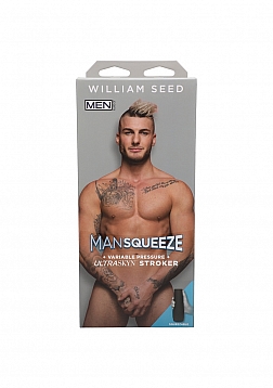 The French-Canadian jackhammering star of Men.com joins the Man Squeeze lineup with a variable pressure hard-case stroker molded directly from his body. Handcrafted in lifelike ULTRASKYN, William's Man Squeeze features a tight, textured interior that warms to the touch and feels just like the real thing. Play your favorite William Seed scene and become his costar!