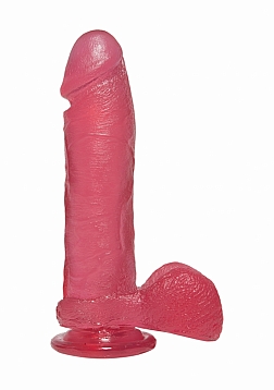 The Crystal Jellies 8-Inch Realistic Cock with Balls features a lifelike phallic shape complete with realistic veins and skin texture. From the firm head to the plush, squeezable balls, the sheer body-safe material shimmers in an assortment of beautiful crystalline tones. The wide base of this product ensures safety during any kind of play, while a built-in suction cup base seamlessly enables hands-free fun.