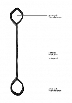This kinky BDSM toy has been designed to keep hands or ankles tied, so you can show your partner who is the boss in the bedroom. Sample some new and exciting positions with this SPREADER BAR WITH CUFFS! The solid steel bar with black nylon webbing measures 54,5 cm (21.5") in length, 5 cm (2") in width and is 2 cm (0.8") thick. The attached cuffs are easily adjustable with velcro bindings. The total weight of the toy is 243 grams (8.6oz.).