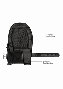 Take your BDSM play to the next level with these real leather BONDAGE MITTENS, PADDED WITH METAL TEETH! Constrain the busy hands and fingers of your subs when you put them in those real leather mitts! With soft leather padding and high-quality stitching, these originally designed gloves should be part of any self-respecting BDSM collection! Each mitt has no less than 300 little metal teeth for teasing, punishing, and anything in between. The mittens are lockable with a clasp, have a D-ring for easy attachment and come with side-zippers for easy access. They measure 27cm (10.5") in length, 18cm ( 7") in width and weigh 390 grams