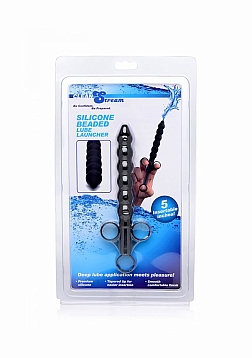 Deep lube application meets pleasure with this 6 bulb lube launcher! Enjoy every smooth, round bead as they push into your hole. This vaginal or anal accessory is designed for one-handed ease of use. With the convenient finger loops you can fill the launcher with whatever liquid you want and inject with one simple thrust. The XL size holds over twice the amount of lube as our original size launchers, so you can get the job done with less steps! Made of premium silicone, this lubricant launcher is compatible with water-based and oil-based lubricants only. This non-porous and phthalate-free material cleans easily with mild soap or toy cleaner. .