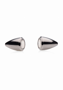 Catch their naughty bits in your crosshairs! Experience piercing pleasure from these magnetic clamps. The gun metal finish and distinct shape create an attractive appearance that looks like a real piercing, but feels like a pinch! Two magnet sets are included to use on both nipples, on the labia, and more. Wear them during foreplay or even during sex. The pressure will heighten the atmosphere of your sexiest sessions. Made of nickel-free aluminum for a sleek, seductive aesthetic.