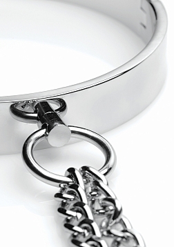 Lock down your slave and make them submit with this sleek, high-quality, chrome collar. An upgrade of the original chrome slave collar, this model features a set of clamps attached by matching chrome chains that let you apply exquisite pain to their pretty nipples and remind them of who is in control. The nipple clamps are fully adjustable via a screw mechanism so you can go from creating a subtle pressure all the way to making them beg! The included hex key locks this collar down tight so they will feel nothing but cool steel around their throat until you are finished having your way.