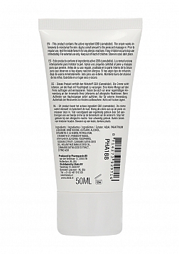 This product contains the active ingredient CBD (cannabidiol). The cream works intensively to moisturise the skin. Apply a small amount to the penis and massage in. Prior to regular use, test the inside forearm for any allergic reactions. If any irritation occurs stop use immediately. For external use only. Keep out of reach of children. Store in a cool, dark place.