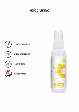 Fast-acting formula in a spray bottle for convenient use at home or while traveling. Developed for the efficient deep cleansing and disinfection of erotic products after use as well as the hygienic storage of your products for a longer period of time. Application: Spray directly onto the area of the toy that needs cleaning. Rub down and wipe with a damp cloth or rinse with water, then dry. Warning: Causes serious eye irritation. When seeking medical advice, keep the packaging or label available. Keep out of the reach of children. Wash hands thoroughly after handling the product. Always wear eye protection. IF IN EYES: remove contact lenses if applicable and rinse gently with water for several minutes, keep rinsing until irritation ceases. If eye irritation continues consult a doctor. Mixture Contains: 2-methyl-isothiazolin-3- one 2-Methyl-4-isothiazolin-3-one and 5-chloro-2-methyl-isothiazolin- 3-one 5-Chloro-2-methyl-4-isothiazolin-3-one May cause an allergic reaction. Anionic surfactants, non-ionic surfactants <5%, Methylchloroisothiazolinone, Methylisothiazolinone, perfumes, CITRAL LIMONENE.