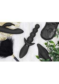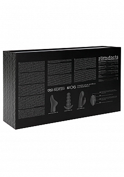 This box features the Vibrating Clitoral Bottom Base which has a slight angle and a pointy bottom. One side is covered with some rousing ribs for extra stimulation. The base boasts a 10 speed motor that will rev up the vibrations to a toe-curling 15,000rpm - all at less than 60 dB Noise Level. This generous box features three interchangeable attachments: a Clitoral Vibrator, a Beaded Vibrator and a Rabbit vibrator. Just click the attachment into the base, twist and play! The Clitoral Vibrator attachment has a beautiful pointed head with two side-wings for extra stimulation. The Beaded Vibrator attachment opens up a whole world of possibilities. With 4 different balls, going up in diameter, the orgasmic world is at your fingertips! Use it vaginally or anally, the choice is yours! The Rabbit vibrator attachment has a flattened head for G-spot stimulation and two vibrating ears to give the clitoris some extra attention. Both base and attachments are made from medical grade silky-smooth silicone and ABS.