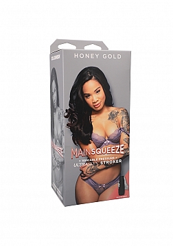 Best New Starlet award winner Honey Gold joins the Main Squeeze lineup with a realistic masturbator molded directly from her sweet honey pot. Handcrafted in lifelike ULTRASKYN, Honey's Main Squeeze features a tight, textured interior that warms to the touch and feels just like the real thing. Each Main Squeeze features a different internal texture and a user-controlled squeeze plate, making your experience as unique as each of our sexy Main Squeeze girls. The double-cap hardshell design doubles as a discreet travel and storage case, keeping your Main Squeeze fresh and ready for whenever the mood strikes.