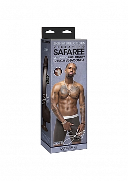 Safaree's anaconda is on the loose! Reality star and recording artist Safaree Samuels made headlines when his nudes were infamously leaked to the public, and his fans have been demanding a Doc Johnson realistic dildo ever since. The wait is over: this perfect 12" replica is flawlessly handcrafted in lifelike ULTRASKYN. Featuring multi-speed vibrations for added stimulation and a suction cup base for hands-free fun, Safaree's Signature Cock is ready to please.