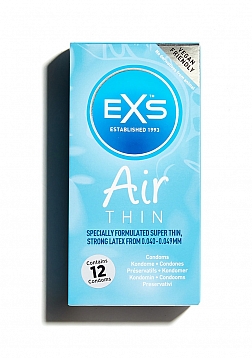 EXS Air Thin are amongst the thinnest quality latex condoms in the world, they have a comfy 56mm fit, have no latex smell and feel like you are wearing no condom. Vigorously tested to the European standards and by the British Standards Institute (BSI) This product is extremely thin yet has the strength of thicker regular latex condoms.