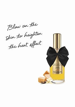 Turn up the heat in your next massage! Caress and blow to maximize the warming effect, and kiss every inch of skin to enjoy the delicious flavor. ContentWarming Massage Oil (100 ml/ 3.4 fl. oz.). Kissable, soft caramel and sea salt flavored.