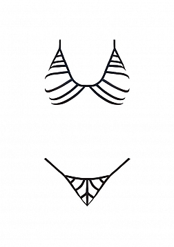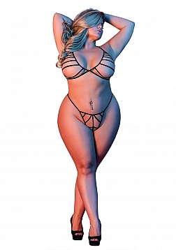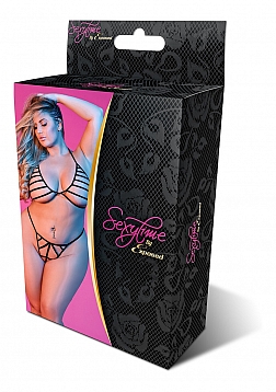 From the Exposed by Magic Silk collection, this style includes: A strappy halter bra featuring plush, form retaining elastic and ties around the neck and back for closure, and a matching strappy G-string.