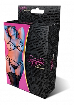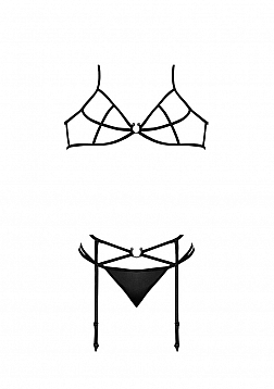 Bra, Garter and G-String Set with Rings and Straps - XXL