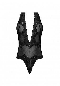 From the Exposed by Magic Silk collection, this style includes: A teddy featuring a pull-over halter neck strap, deep plunging V-neckline, high-cut sides and an attached g-string bottom.