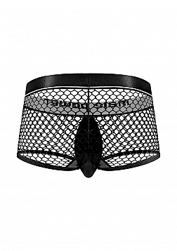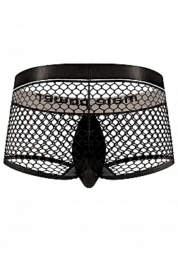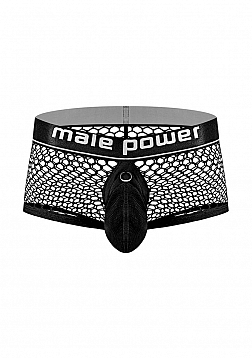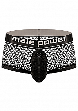 From the Cock Pit Net collection by Male Power, this style includes: A Mini Cock Ring short featuring short cut legs, a detachable snap off pouch revealing a plush elastic C-ring and a 1 1/2 " satin finish branded waistband.