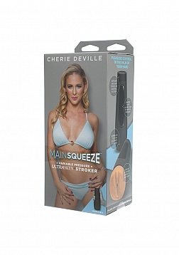 Cherie DeVille has joined Doc Johnson's Main Squeeze line with her own hard-case masturbator. It's designed to put the power in your hands and features a squeezable grip and suction-adjusting cap that let you vary each stroke. Molded directly from Cherie's body, this ULTRASKYN stroker looks and feels just like the real thing. Each ULTRASKYN sleeve features a different textured interior, making your experience as unique as each of our sexy Main Squeeze girls. The double-cap hardshell design doubles as a discreet travel and storage case, keeping your Main Squeeze fresh and ready for whenever the mood strikes.
