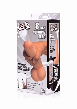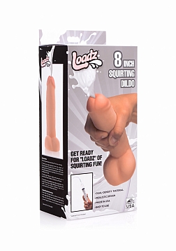 This 8 incher will fill you to the brim. Get ready for Loadz of squirting fun! This ultra lifelike dildo features a dual - density material that looks and feels just like the real thing. Enjoy every vein, wrinkle, and ridge of this ejaculating dong as you enjoy penetration on your own or with a partner. To use, just fill the syringe with Cum Load Unscented Water - based Lube or another fluid, insert the tip of the syringe into the hose, and when you are ready for a wet rush, push in the plunger! This material is compatible with both silicone and water - based lubes and can be cleaned with mild soap and warm water after use.