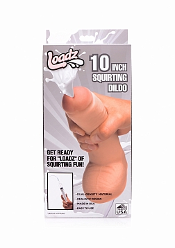 This 10 incher will fill you to the brim. Get ready for Loadz of squirting fun! This ultra lifelike dildo features a dual - density material that looks and feels just like the real thing. Enjoy every vein, wrinkle, and ridge of this ejaculating dong as you enjoy penetration on your own or with a partner. To use, just fill the syringe with Cum Load Unscented Water - based Lube or another fluid, insert the tip of the syringe into the hose, and when you are ready for a wet rush, push in the plunger! This material is compatible with both silicone and water - based lubes and can be cleaned with mild soap and warm water after use.