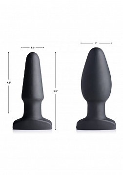 A classic tapered shape that gets bigger in your booty! Expand your pleasure with this inflatable and vibrating anal toy unlike any other. This silky-smooth silicone plug will gently swell within you for an unbelievable sensation of fullness. Treat yourself or your partner to 7 modes of vibration, including 3 speeds and 4 patterns. The remote control does it all, sending buzzes into you booty, as well as allowing you to find the perfect inflation point. Just hold down the button on the left to begin the ballooning, or press it more carefully for a slow, gradual growth. The button on the right will instantly deflate it back to its original size for a comfortable removal.