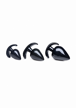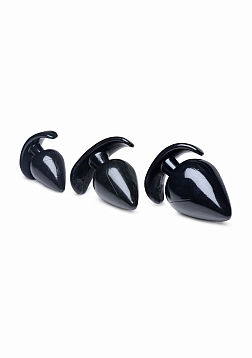 | Dimensions package | 11,30 x 14,60 x 6,10 cm |  | Weight package | 213 gram |  | Product dimensions | 11,3 x 14,6 x 6,1 cm |  | Product weight | 213 gram |  | Splashproof | Yes |  | Phthalate free | Yes |  | Specifications | Triple spade 3 buttplugs in varying sizes. Small: 6,7 cm length, 3,6 cm width, 6,3 cm insertable length Medium: 8,1 cm lenght, 4,1 cm width, 7,8 insertable lenght Large: 10 cm length, 5,3 cm width, 8,6 cm insertable lenght |  | Materials | TPR |