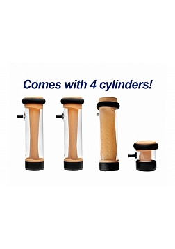 Now with more cylinders and textures for even more ecstasy! Let the Super Milker Deluxe Stroker Machine do all the hard work for you! This love machine is specifically designed for automatic stroking and sucking, with a total of 4 cylinders for a variety of sensations. This multi-speed machine houses everything you need discreetly in the locking top of the case. Just plug the hose into the cylinder and use the dial to control how fast or slow you want it. Three different cylinders are included: the large, smooth cylinder is specially designed to suck your shaft, at nearly 9 inches long and lined with supple rubber for a tight seal. You will love it so much that we have included two of them! A third long cylinder will surround your entire shaft with soft, delicate nubs for a unique massage. Finally, the smaller cylinder is for more targeted pleasure, such as your cock head or even the clitoris or nipples. Use the Milker alone or with a partner for foreplay, solo play, or anything you can dream up. This updated machine is designed to bring you heightened pleasure with more options. All accessories store easily in the top compartment, which has a lock and 2 keys for the ultimate in portable and pleasure and privacy.
