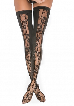 Wetlook and floral lace tigh highs.