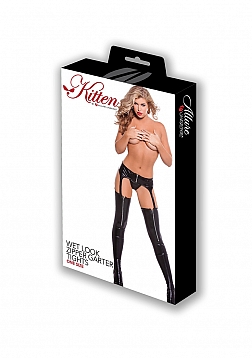 Wetlook Garter Tights with Zipper - One Size