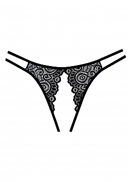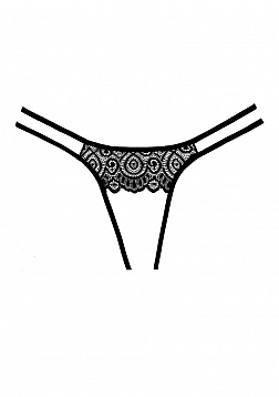 Your heart skips a beat in this delicate galloon lace panty, giving more than a peak in front, while shamelessly flirting in the ultra ouverte back.