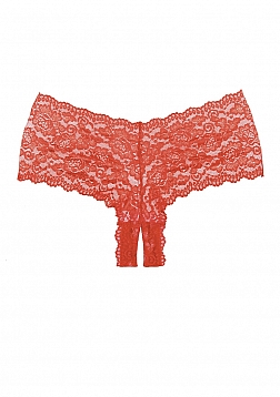 The classic lace booty short gone wilde with a crotchless twist, hugging the hips and sweetening the derriere.