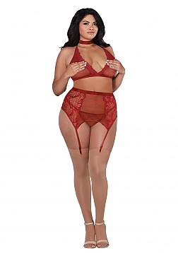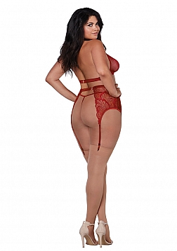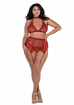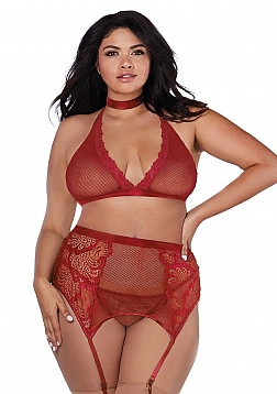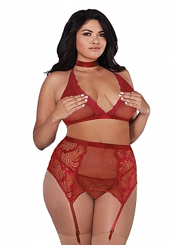 • Fishnet and Lace 4 Piece Set - Plus Size