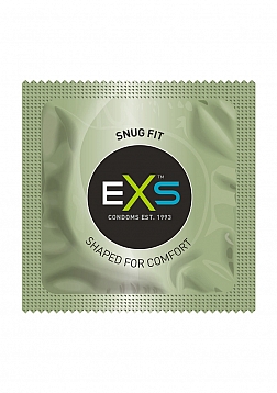 For a tighter more secure fitting condom choose EXS Snug Fit. They come with a 49mm width and have a straight wall and a teat end. EXS Snug Fit condoms have no latex smell and are made from a thin yet strong silky latex. Vigorously tested to the European standards and by the British Standards Institute (BSI) This product is extremely thin yet has the strength of thicker regular latex condoms.