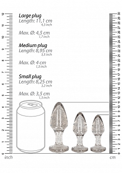 Is orgasmic anal action what you’re seeking? Our sparkling acrylic butt plugs promise not to disappoint. The set offers a variety of 3 different sizes, designed with comfort, easy insertion and ultimate pleasure in mind. Relax and enjoy some of the most fulfilling back door pleasure of your life, whether on your own or with your playmate. This glittering set of plugs is ready to give your booty an upgrade to bootiful. Start small and work your way up to the larger size. The plugs have a tapered tip for easy insertion and extra satisfaction. The base is flared for complete comfort & security. Just lube up and you’re ready to go. All 3 products offer a heightened climax and just when you think you have reached your limit; our anal sex toys will give you the climactic surprise of your life.