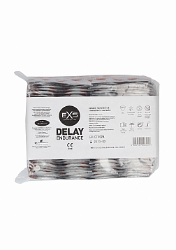EXS Endurance Delay condoms are 53mm straight walled and made of natural latex. Each condom is lubricated on the outside (although extra lube maybe required) and have a 1% Lidocaine anaesthetic lube on the inside which should be massaged into the head of the penis. EXS Endurance Delay condoms make you last longer during love making!