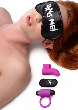 Create an unforgettable experience with this 4 piece kit that is attractive and easy-to-use. This wonderful set includes a Finger vibe for stargeted stimulation, a cock ring, blindfold, and powerful vibrating bullet that are sure to excite! The bullet can be used independently or inserted into the Finger vibe or cock ring sleeve to add vibration to your play! This set is also waterproof, allowing for use in the shower or the hot tub. The fun never stops with this USB rechargeable vibrating bullet, as it also comes with a wireless remote for easy solo use or exciting partner play! Play with confidence - this Set is made with body safe, non porous, phthalate free silicone. Use only with water-based lubricant, silicone material is incompatible with silicone based lubes.
