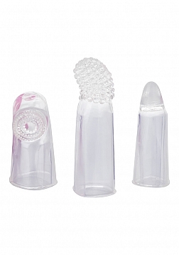 Also included in this kit are 3 easy to use transparent TPR finger teasers with pleasure nubs and shaped tips, for maximized stimulation and orgasmic sensations. To increase sensitivity and heighten climax, always use a quality lube with the G-spot accessories.
