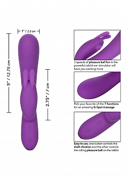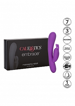 Satisfy your wildest desires with the sensual Embrace Massaging G-Rabbit. The sleek and smooth contoured personal massager featurestriple motors, 7functions of vibration, pulsation and escalation and intense 3-speed rolling ball massaging stimulation.