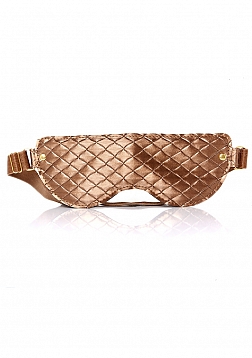 Quilted mask with gold accents.