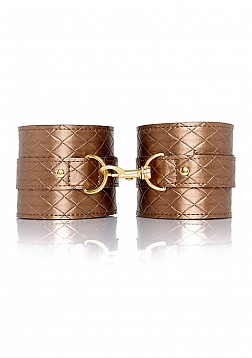 Quilted ankle cuffs with gold accents. Adjustable in size.