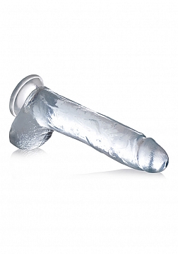 This crystalline cock is thick, clear, and hand crafted for peak pleasure. Perfectly sculpted with lifelike details and a meaty ballsack, this huge 10.5 incher is great for veteran size queens or kings. Designed to be low maintenance and easy to clean so you can play hassle free and focus on your pleasure.