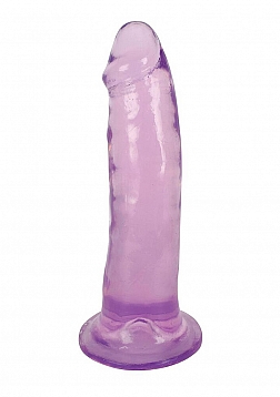 This 7 inch slim vibe is the perfect amount of cock to fill you up! The veiny crystalline shaft has a lifelike look, crafted out of translucent phthalate-and-latex free PVC for a nice firm ride. The solid suction cup at the base grips any flat surface, with just enough length and girth to leave you completely satisfied! The slick and firm material is easy to clean, and is made with USA materials for a quality toy that is the perfect sweet treat .