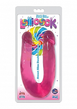 A double dildo for twice the fun! This Double Dipper features a slimmer dong on one side, and a slightly girthier dong on the other. The tapered U-shape is great for double penetration during solo use, or even sharing with a partner! This crystalline dildo has a lifelike look, crafted out of translucent phthalate-free, Ultra Premium Enhanced PVC for a firm, but pliable ride. The slick, textured material is easy to clean, and is made with USA materials for a quality toy that is the perfect sweet treat.