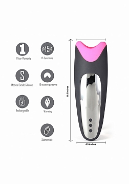 | Dimensions package | 12 x 9 x 29,50 cm | | Weight package | 940 gram | | Product dimensions | 12 x 9 x 29,5 cm | | Product weight | 501 gram | | Product diameter | 9,4 cm | | Insertable length | 12,7 cm | | Quantity motors | 1 | | Rotations per minute | 7000 RPM | | Speed modes | 15 | | Noise level | 48 dB | | Rechargeable | Yes | | Rechargeable time | 30 min | | Recharged battery lifetime | 180 min | | Waterproof | Yes | | Phthalate free | Yes | | Materials | Silicone, ABS |