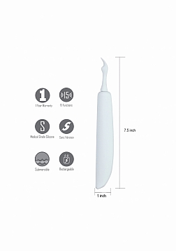 | Dimensions package | 11,50 x 4,50 x 24 cm | | Weight package | 300 gram | | Product dimensions | 11,5 x 4,5 x 24 cm | | Product weight | 70 gram | | Product diameter | 2,5 cm | | Quantity motors | 1 | | Speed modes | 15 | | Noise level | 48 dB | | Rechargeable | Yes | | Rechargeable time | 30 min | | Recharged battery lifetime | 180 min | | Waterproof | Yes | | Phthalate free | Yes | | Materials | Silicone, ABS |