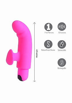 | Dimensions package | 7,30 x 4 x 16,70 cm | | Weight package | 118 gram | | Product dimensions | 7,3 x 4 x 16,7 cm | | Product weight | 65 gram | | Product diameter | 3 cm | | Insertable length | 9,1 cm | | Quantity motors | 1 | | Rotations per minute | 8800 RPM | | Speed modes | 10 | | Noise level | 48 dB | | Rechargeable | Yes | | Rechargeable time | 30 min | | Recharged battery lifetime | 180 min | | Waterproof | Yes | | Phthalate free | Yes | | Materials | Silicone, ABS |