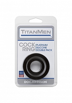 TitanMen® Silicone C-Rings Double Pack makes it easy to be hard! This two-piece set includes stretch-fit cock rings in two sizes, rendered in soft, body-safe silicone for a snug but comfortable fit. The large ring has a 2-inch diameter ideal for standard use at the base of the penis (behind the balls), while the 1.4-inch diameter of the small ring makes it suitable for wear further down the shaft or at the base for a more intense and long-lasting erection.