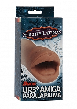 The Noches Latinas line represents the newest in pleasure from Doc Johnson. We present to you the beautiful caramel-colored pussy masturbator. These items are discreet and easy to use due to their wonderfully compact design. Men will revel in the realistic feel, as this line is made of latex-free ULTRASKYN™; the most fleshy, authentic material on the market. They even warm to the touch, for a most sensational experience that consumers rave about! All packaging for our Noches Latinas line is written predominantly in Spanish, and marketed for Spanish-speaking toy users. The Noches Latinas Amiga Para La Palma line includes a vagina, ass, and mouth. These products are Proudly Made in America, exclusively by Doc Johnson.